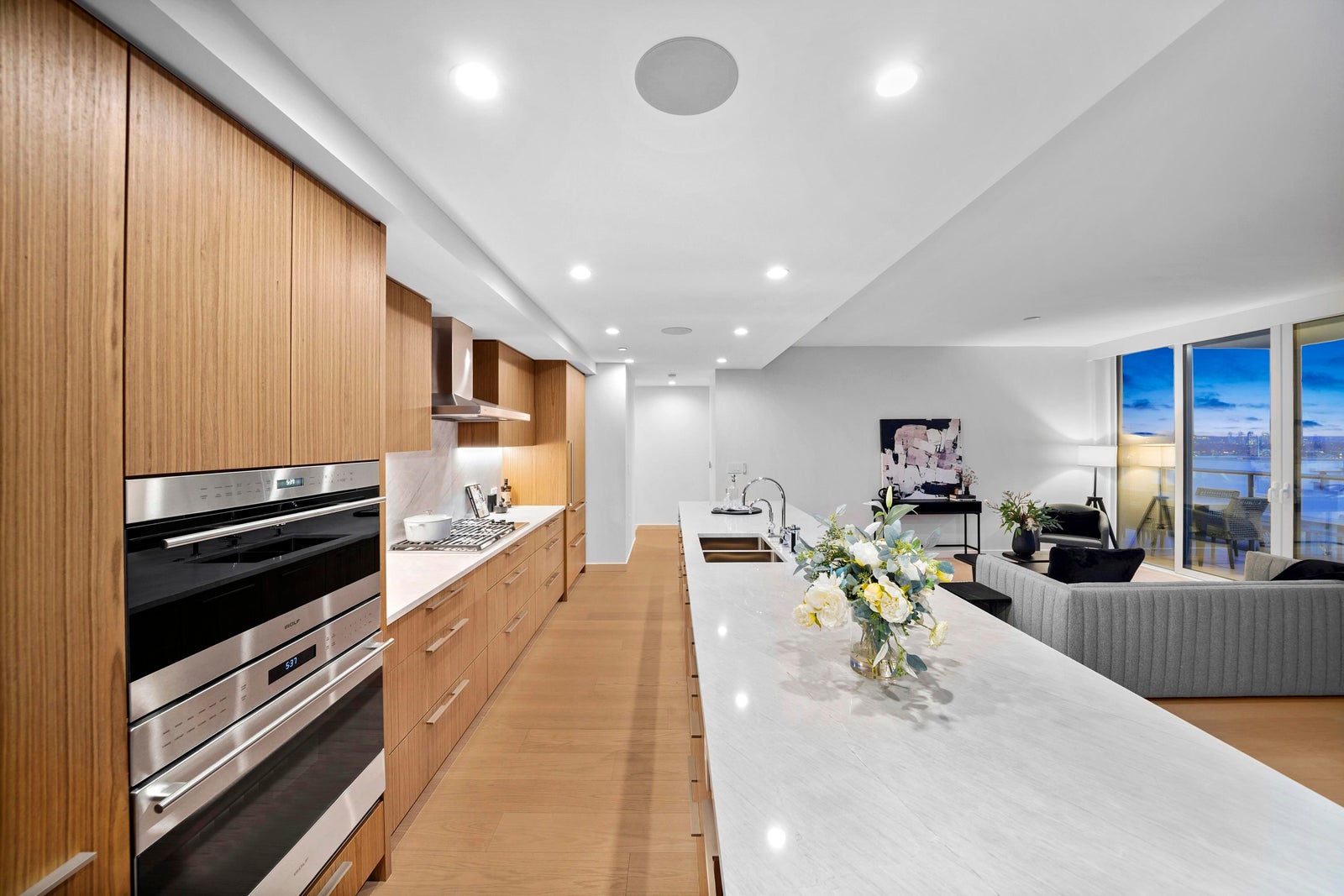 Experience elevated living in this exquisite SE corner residence-1335 Howe. A private 272 sqft terrace gives a perfect backdrop for entertaining with panoramic views of Granville Island & False Creek. Defined by seamless technology including AC, integrated smart-home automation, motorized blinds & sensored lighting. The gourmet kitchen is a culinary masterpiece.Featuring a grand island with wine fridge & top-tier Sub Zero, Wolf & Asko appliances. Retreat to the primary bedroom, featuring a walk-in closet and a spa-inspired ensuite clad in floor-to-ceiling marble with heated floors. Enjoy world-class amenities: Year-round outdoor pool/hot tub, gym, concierge, dog run, sauna & steam. Includes a 2 car private garage & storage locker. *Open House Sun. April 12, 2-4pm